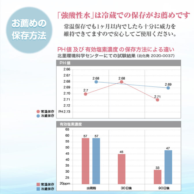 [冷蔵保存出荷時]pH:2.68 有効塩素濃度:57ppm