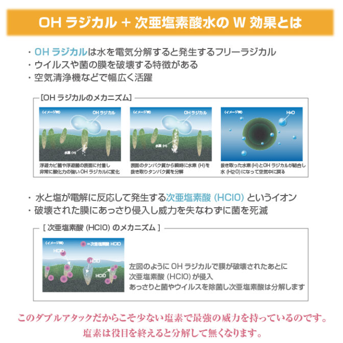 しまいます。しかし次亜塩素酸がイオン化されたものしか含まない2隔膜3室型のタイプ