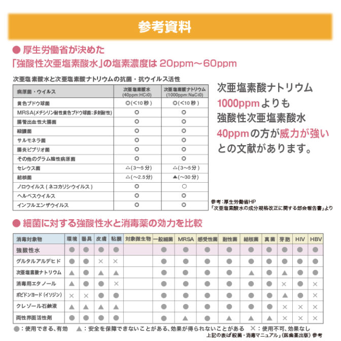 扱っております。安全性が非常に高く無害な消毒液で、新型ウイルス・抗生物質耐性菌にも