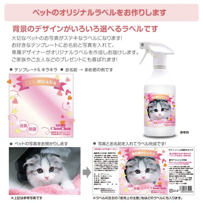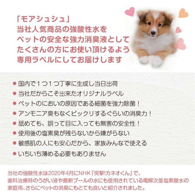 あなたのペット専用オリジナルラベル モアシュシュ500ml 消臭スプレー 本物の次亜塩素酸水 除菌 除菌スプレー 強力消臭 最強かつ安全 置き型 MOREChouChou