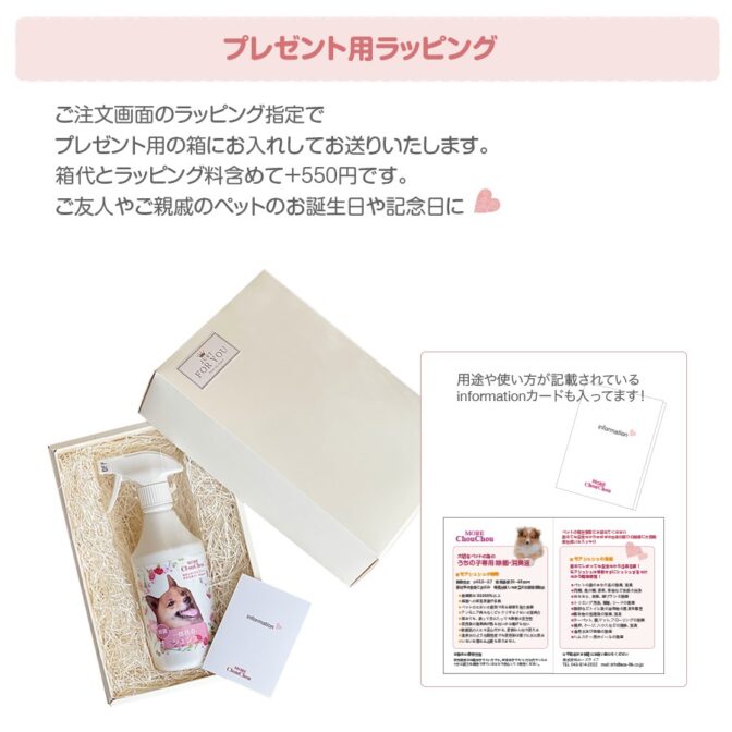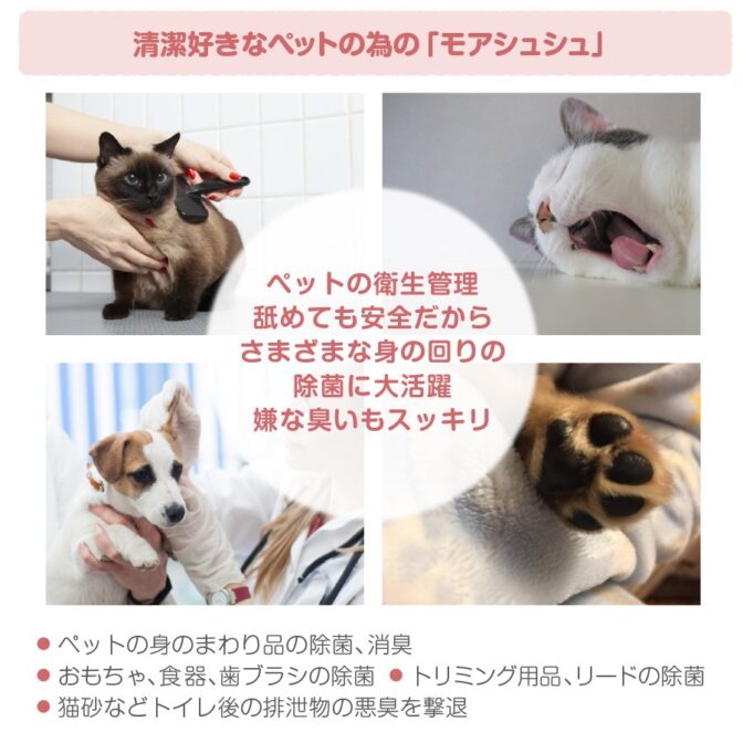 MORE Chou Chou(モアシュシュ)は、当社が販売している強酸性水がペットの除菌・消臭液にもとってもいい事を、たくさんの人に伝えたくて作りました!